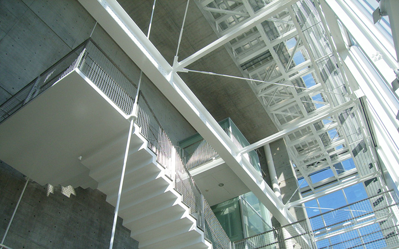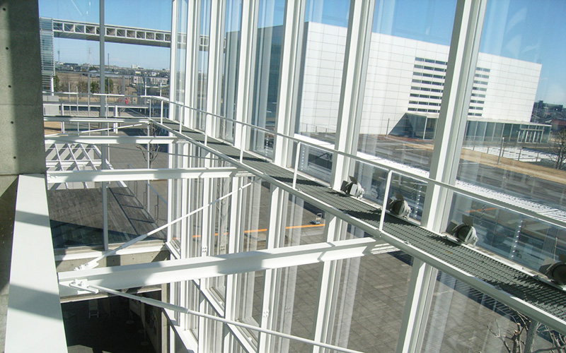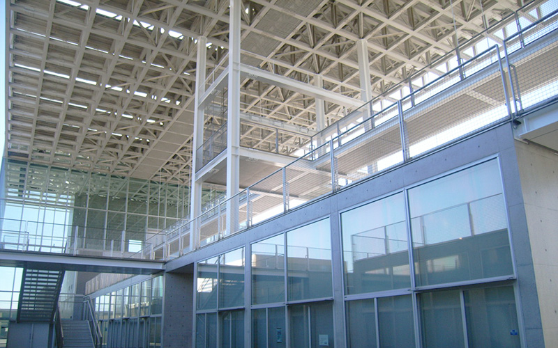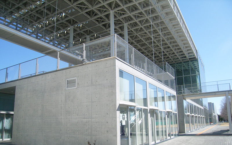 ガラス張りと打ちっ放しのコンクリートを生かした特徴のある施設です。