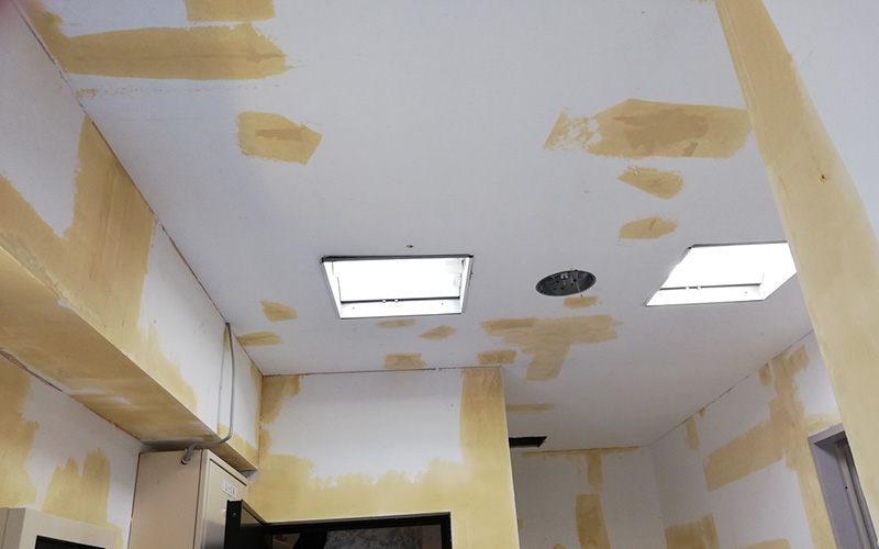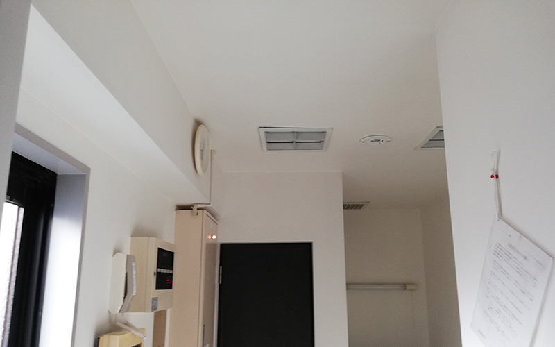 夜間に廊下の吹き付け作業を行う時は、コンプレッサーを防音材で覆ったうえ倉庫に入れて防音し、住民の方の睡眠の妨げにならないようにしました。